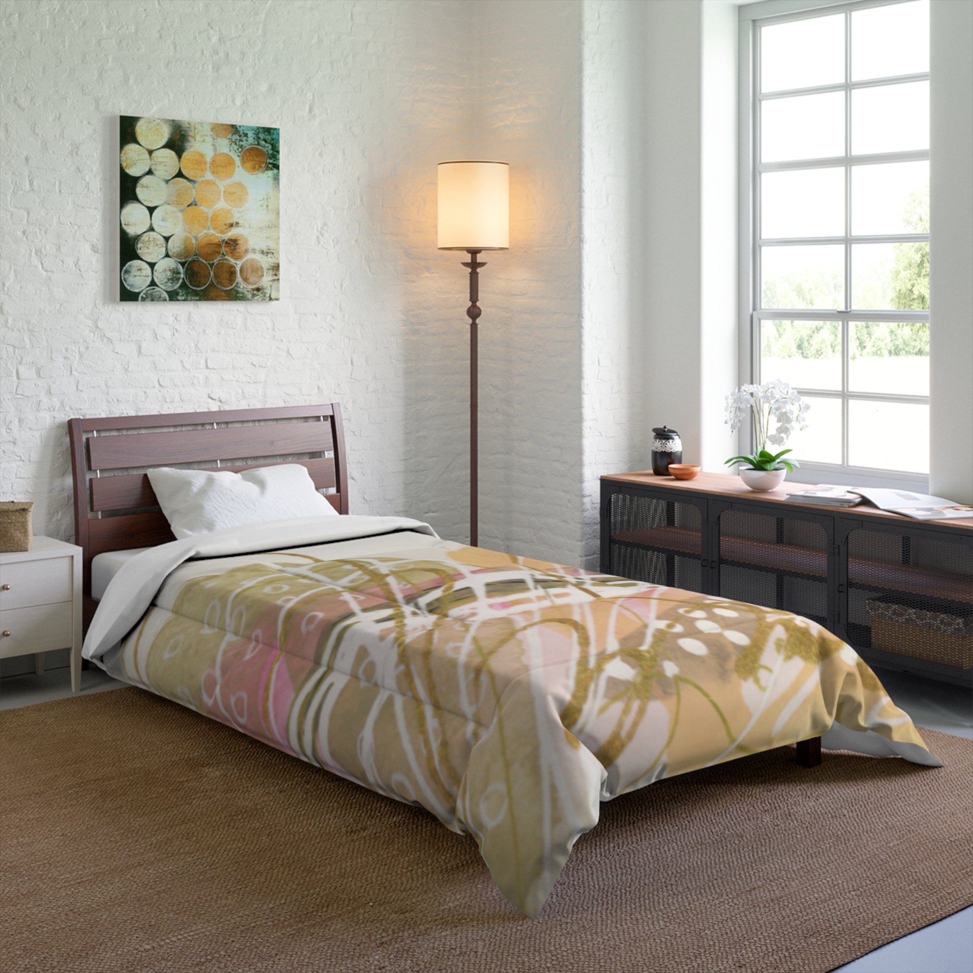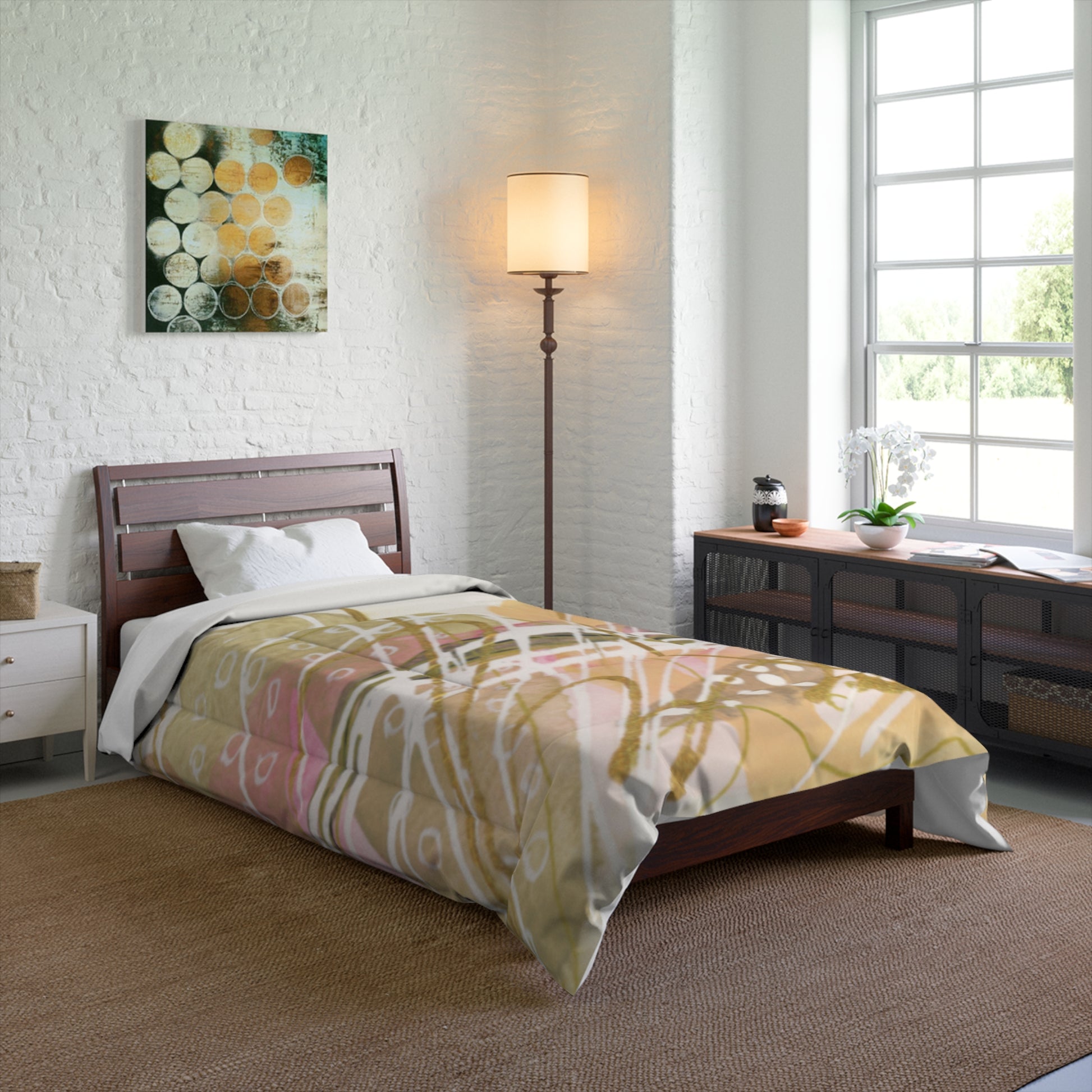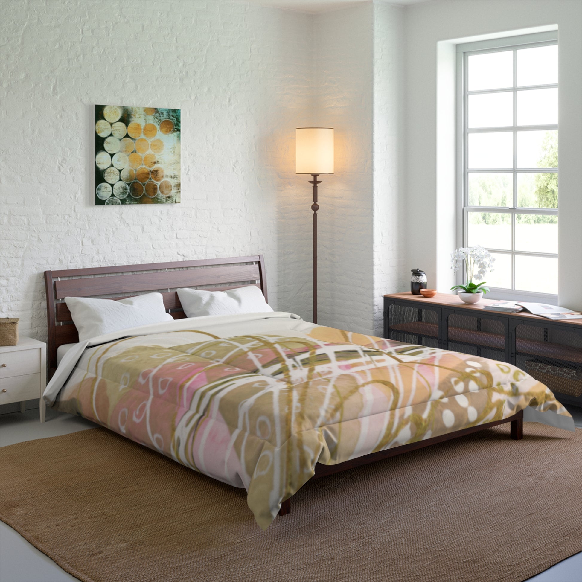 Transform your bedroom into a serene oasis with this stunning comforter. The vibrant colors and artistic design create a unique focal point, offering both warmth and a stylish touch. Perfect for any season, this lightweight comforter brings a feeling of softness and sophistication, ensuring cozy nights and inviting mornings. Ideal for homeowners seeking to refresh their décor, as well as those looking for a thoughtful gift for housewarmings, weddings, or holidays. This comforter suits various occasions, from casual family gatherings to special celebrations, adding a splash of creativity and comfort to your space.