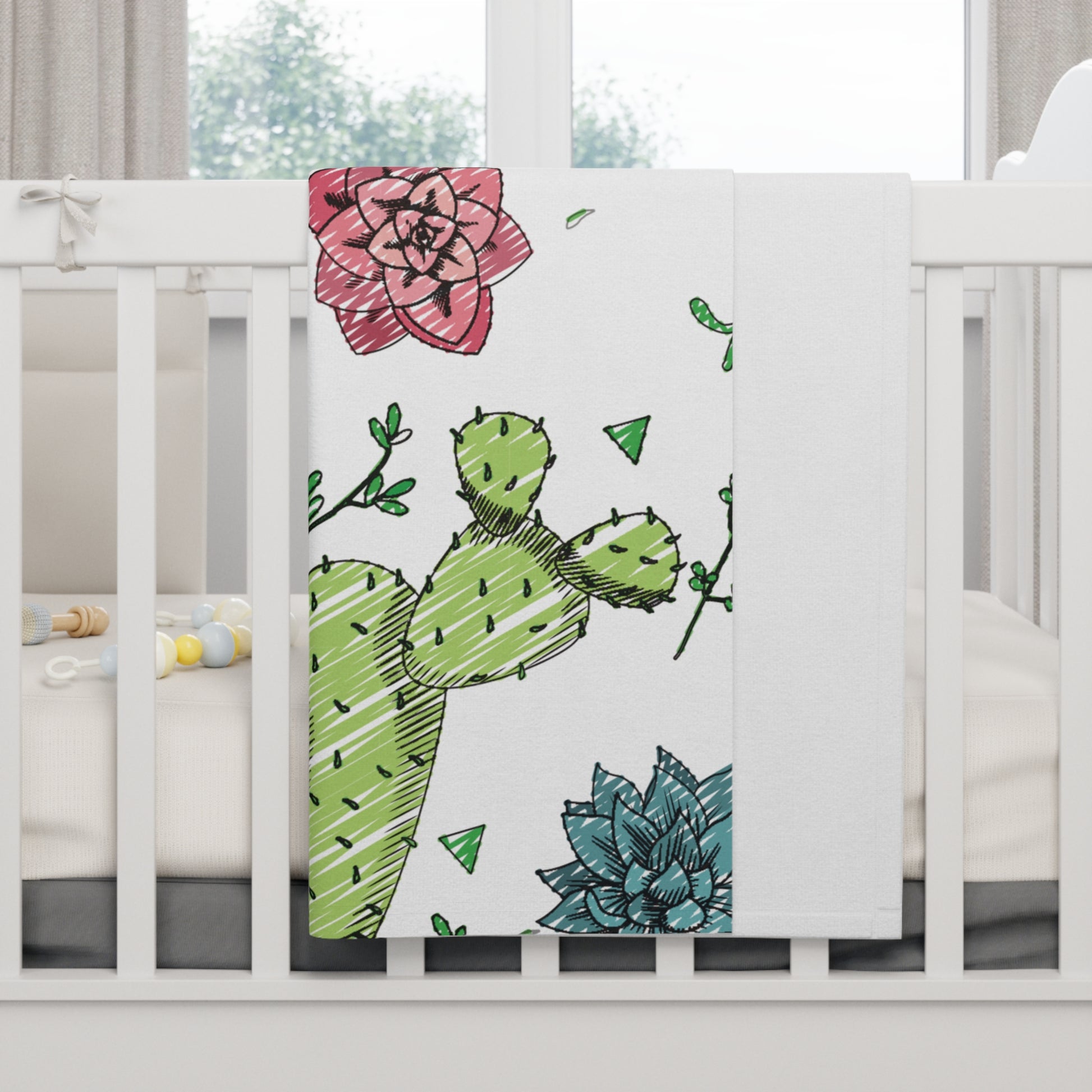 Introducing our delightful Baby Blanket, perfect for snuggling your little one in warmth and comfort. This vibrant blanket features a cheerful cactus and floral design, adding a playful touch to any nursery or playroom. Its cozy texture and lightweight feel make it an ideal companion for nap time, stroller rides, and cuddle sessions. It’s not just a blanket; it’s a source of comfort for your baby, creating a soothing atmosphere. This product is perfect for new parents, grandparents, and anyone looking to gift something special at baby showers, birthdays, or holidays. Make your baby's world just a little more colorful and cozy!